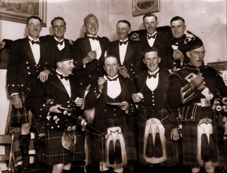 The Lonach Pipe Band3rd left back row is Sandy Ross, Culquoich, Towie.