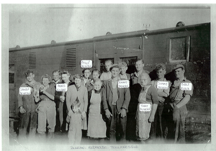 Sandy Duncan, ?, ?, Agnes Gilbert, ?, ?, Philip Duncan, ?, ?, Johnny Duncan, ?, ?, Tibby Duncan, Jimmy Duncan, Bert Riach.